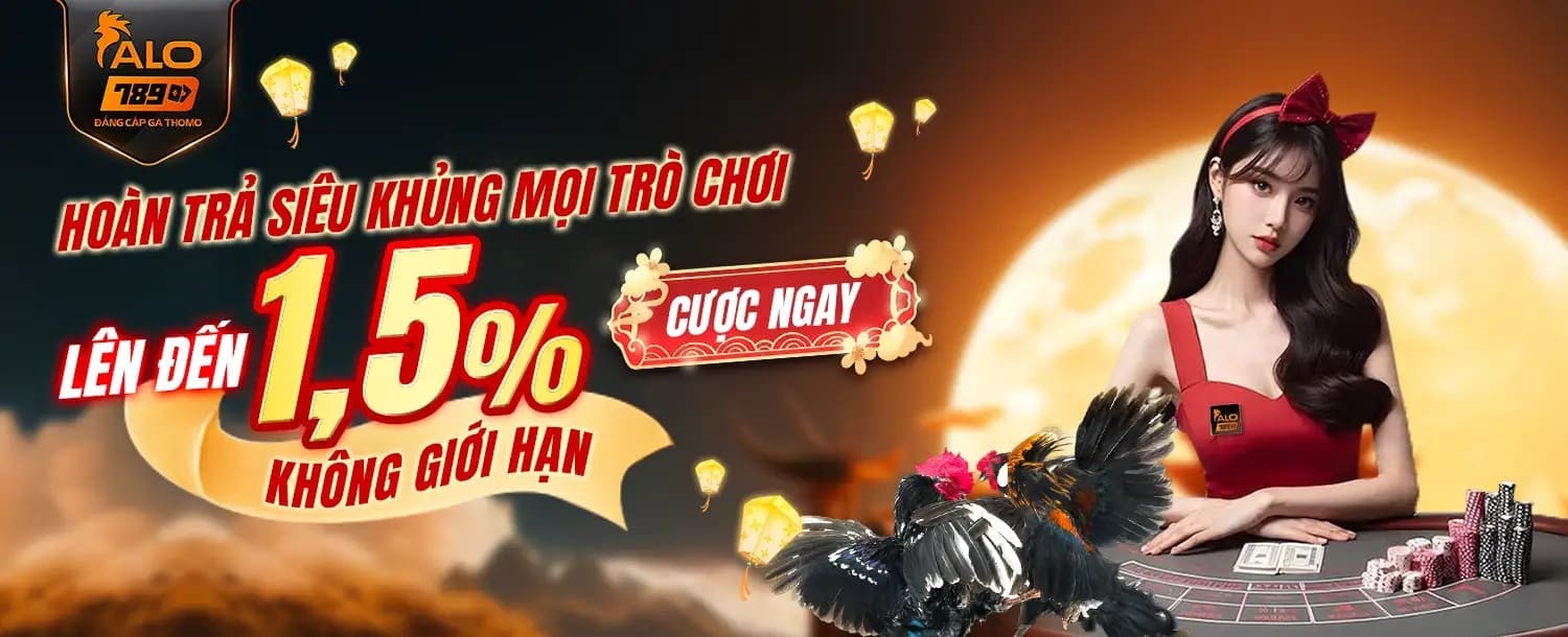 Nhà cái alo789ct.com hoàn trả 1,5% số tiền vé cược của hội viên, dù thắng hay thua đều được hoàn. Đặc biệt: Không giới hạn số tiền hoàn và số lần hoàn trả. Yên tâm đặt cược.